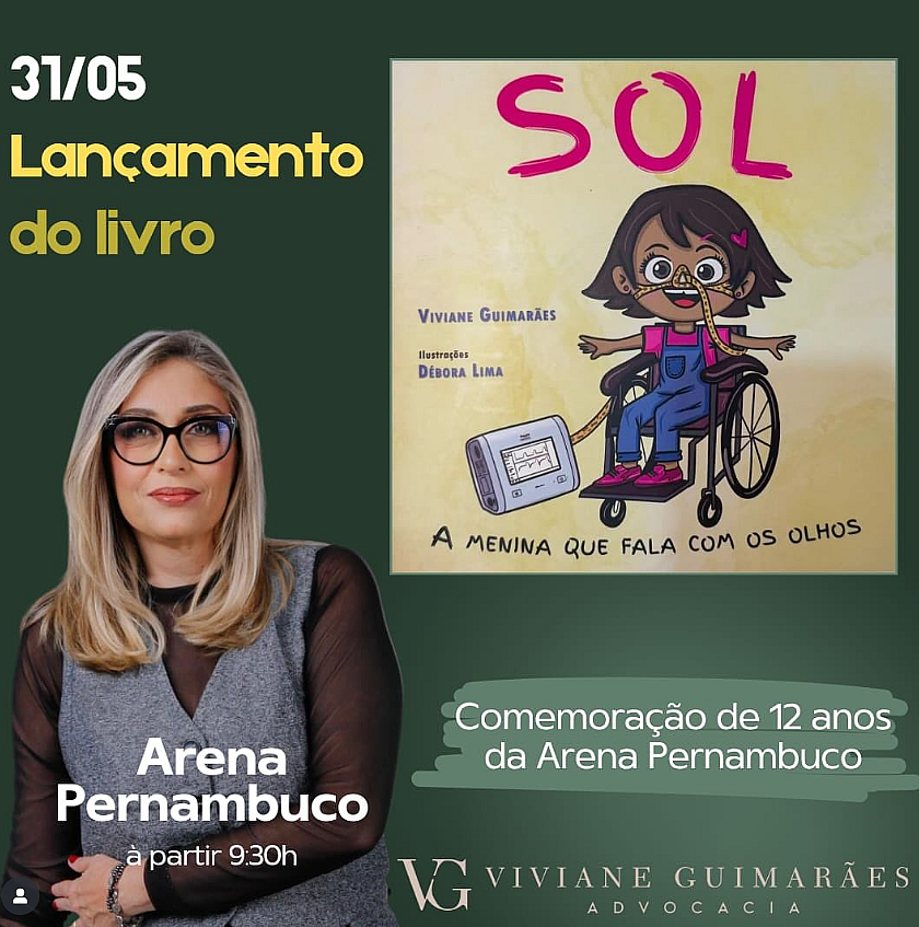 Junto com a sua comemoração de 12 anos da Arena Pernambuco, lançamos o nosso livro “Sol - a menina que fala com os olhos” - conta a história de uma criança com atrofia muscular espinhal (AME), que se comunica pelo olhar...